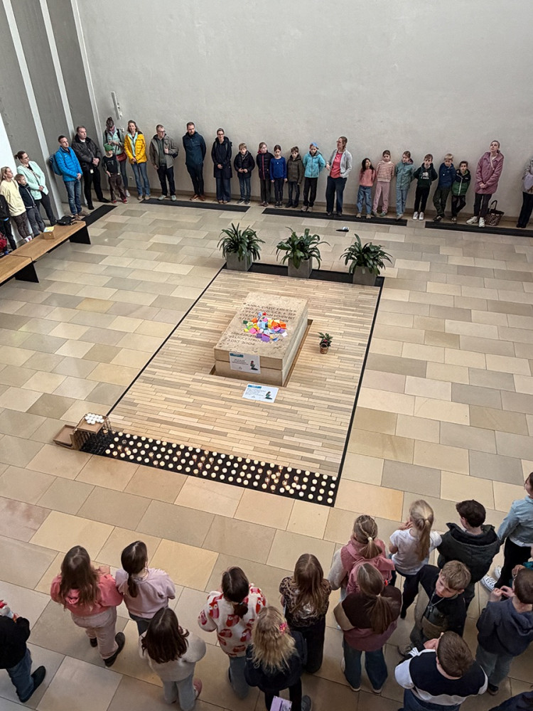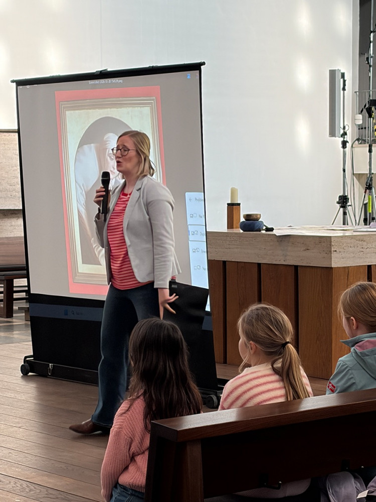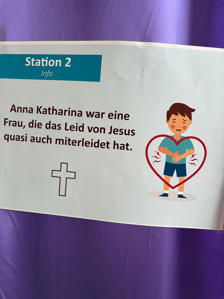 Anschließend ging es weiter zu sechs abwechslungsreichen Stationen: Beim Basteln, Schreiben und Zuhören setzten sich die Kinder kreativ mit den besonderen Eigenschaftenvon Anna Katharina auseinander – wie Mitleid, Mitgefühl und der Freundschaft mit Jesus.