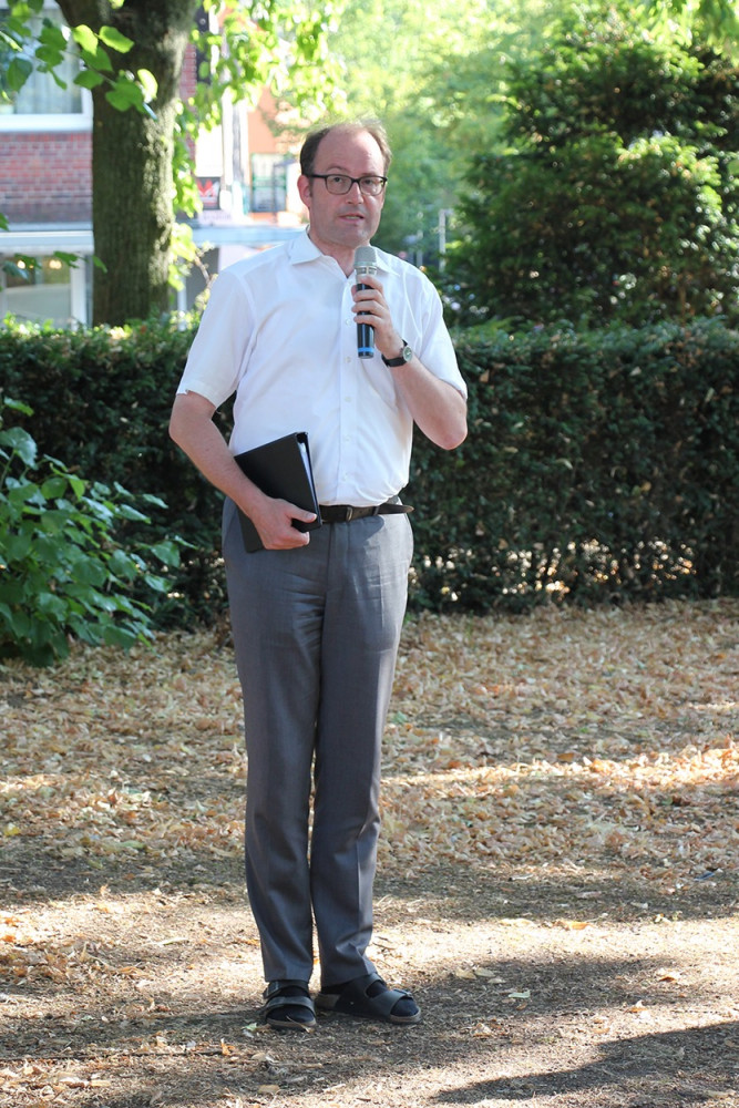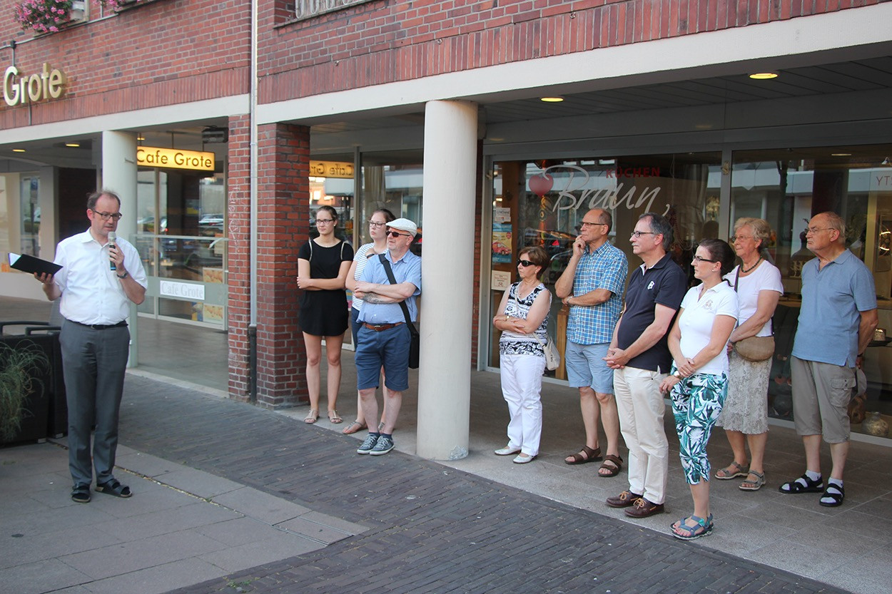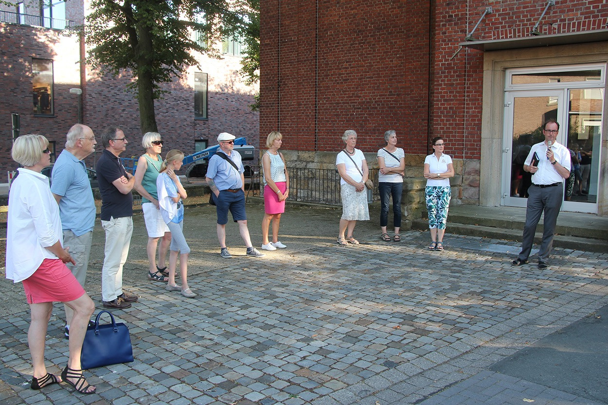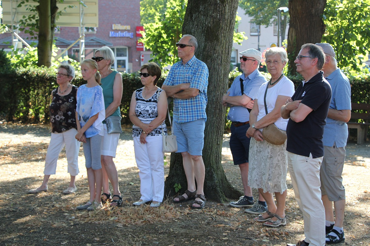 Über zwanzig Interessierte trotzen dem heißen Wetter und folgten durch die Innenstadt Dülmens den Spuren Brentanos.