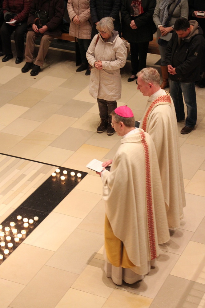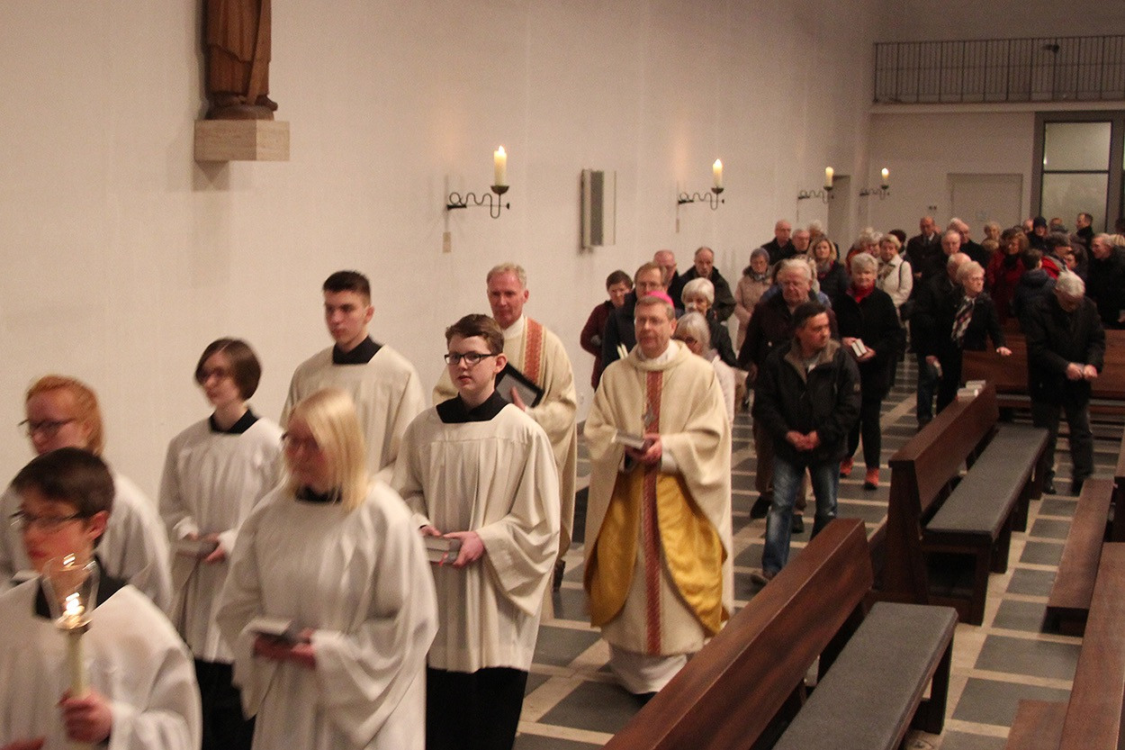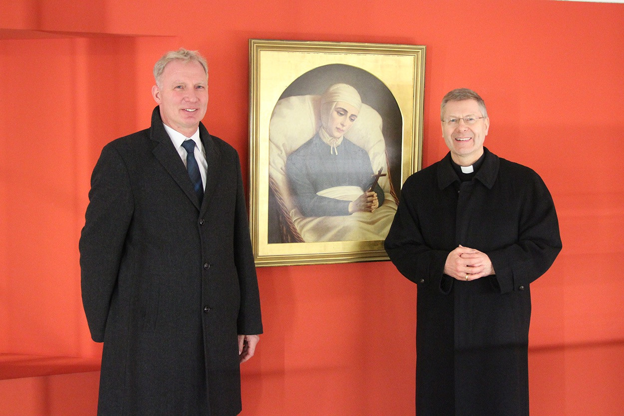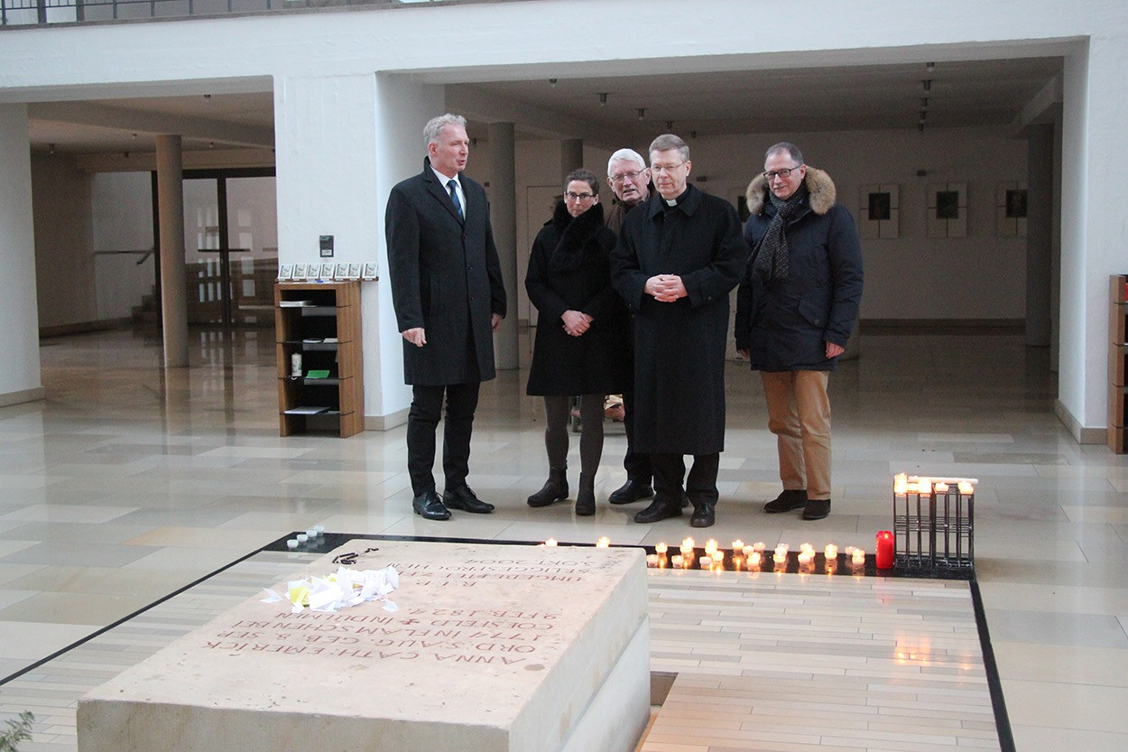 Eine Voraussetzung für eine mögliche Heiligsprechung der seligen Anna Katharina Emmerick ist erfüllt: die weltweite Verehrung. „Monatlich erreichen uns bis zu 50 Emails aus aller Welt“, berichtete Angela Pund, stellvertretende Vorsitzende des Emmerick-Bundes, Weihbischof Dr. Stefan Zekorn. Der Regionalbischof war am Gedenktag der Seligen (9. Februar) nach Dülmen gekommen. Auf dem Programm standen ein Gespräch mit den Aktiven des Emmerick-Bundes sowie eine Eucharistiefeier in der Heilig-Kreuz-Kirche mit anschließender Prozession zum Grab der Seligen, das sich in der Kirche befindet.