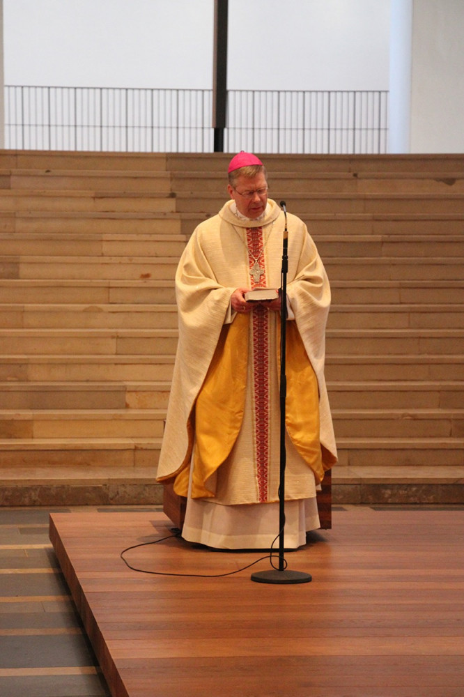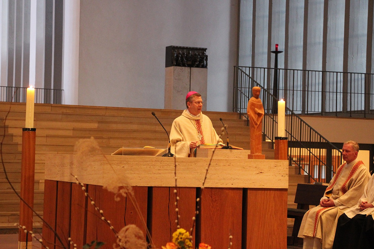 Im anschließenden Gottesdienst verwies er in seiner Predigt auf die Wirkung der seligen Anna Katharina Emmerick. Sie sei eine arme Kötterstochter gewesen, die die meiste Zeit ihres Lebens schwach, krank und bettlägerig war. Lange habe sie nach der Möglichkeit gesucht, in ein Kloster einzutreten. Das sei ihr gelungen. Allerdings habe sie nur neun Jahre im Kloster leben können, da es aus politischen Gründen geschlossen wurde. „Ein Leben, das sich äußerlich nicht entfalten konnte. Doch was für eine große Wirkung hat es gehabt. Bis heute erschließt die Selige unzähligen Menschen in Europa, Amerika, Afrika und Asien den christlichen Glauben. So zeigt uns ihr Leben: Gott führt uns als Einzelne und als Kirche seine eigenen Wege, wenn wir uns auf ihn einlassen. Die selige Anna Katharina lehrt uns Mut zur scheinbaren Vergeblichkeit im Vertrauen auf das größere Wirken Gottes.“