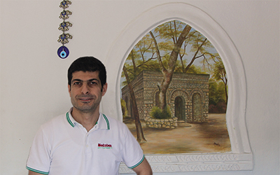 Wer sich mit Anna Katharina Emmerick als weltweitem Phänomen befasst, der kennt das vertraute Bild vom „Hauses der Maria“ mit der markanten Bruchsteinfassade, den drei Rundbögen und dem knorrigen Baum davor. Und dieses Bild lässt sich auch in Dülmen entdecken! Als Wandmalerei – und dies fast exakt an jener Stelle, an der einst Clemens Brentano am Bett der Seherin seine Aufzeichnungen niederschrieb. Die Rede ist vom Döner-Restaurant an der Nonnengasse in Dülmen, in direkter Nähe zum früheren Kloster Agnetenberg und unweit der einstigen Bürgerhäuser Roters und Limberg, wo Anna Katharina Emmerick nach ihrer Ausweisung aus dem Kloster Agnetenberg ihr Quartier bezog. Hier also, an der Nonnengasse 2, betreibt Mehmed Kabukcu, der mit Frau und zwei Kindern in Dülmen lebt, seit 2004 einen Schnellimbiss. Eingerichtet und ausgestaltet wurde die Räumlichkeit allerdings schon Mitte der 1990er Jahr durch den damaligen Inhaber, einen aus der Türkei eingewanderten Armenier. Armenier sind Christen, und so finden sich unter den insgesamt sieben auf Putz aufgemalten Bildern im Speiseraum nicht nur Szenen aus dem antiken Kleinasien, sondern etwa auch von einer orthodoxen Kirche – und eben auch vom „Haus der Maria“ in Ephesus. Mehmed Kabukcu, geboren 1975  in der Gegend der südtürkischen Stadt Maras, hat damit kein Problem: Er bekennt sich ganz bewusst zu religiöser Toleranz. Und das auch aus eigener leidvoller Erfahrung: Zwar ist seine Familie muslimisch, gehört aber zur Glaubensgemeinschaft der Aleviten, die sich keiner klassischen Moscheegemeinde anschließen und seit jeher vom „offiziellen“ Islam in der Türkei unterdrückt werden. Und: Er ist Kurde – was ebenfalls bis heute zu Repressionen an seiner Volksgruppe in der Türkei führt. Daher kam Kabukcu 1993 als Asylbewerber nach Deutschland, 2001 wurde er eingebürgert. Mehmed Kabukcu hat seine Flucht nach Deutschland nicht bereut. Fremdenfeindlichkeit sei ihm in Dülmen noch nicht begegnet. Sein Restaurant läuft gut: „Wer gute Arbeit leistet, wird auch anerkannt“, meint er. Das derzeitige Flüchtlingsdrama empfindet er als Katastrophe, weniger hierzulande als vor allem weltweit.